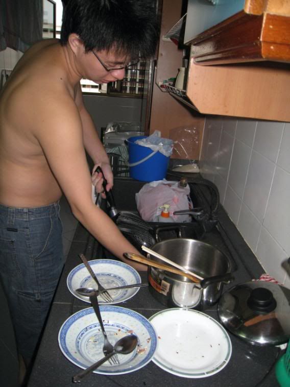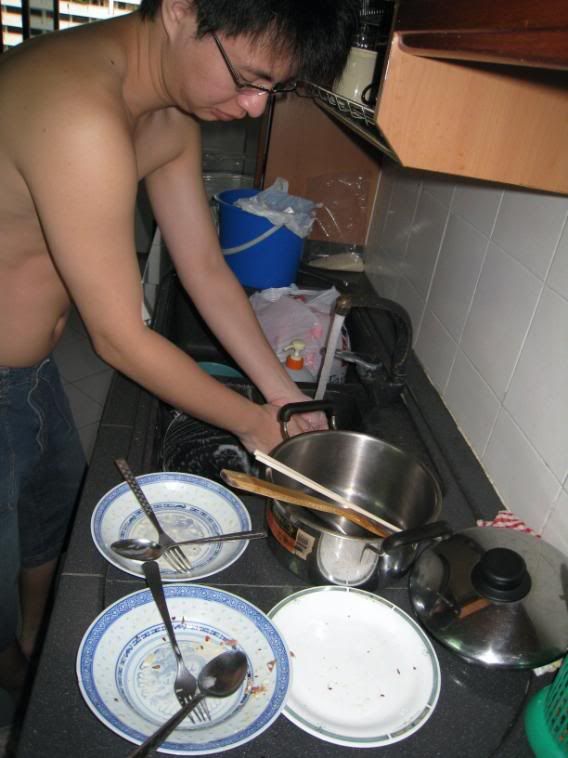 the usual routine. i cook he wash. =)